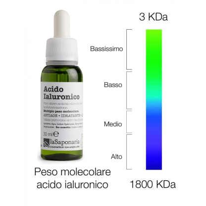 Un acido ialuronico di origine naturale altamente performante poiché composto da diversi pesi molecolari mixati tra loro: bassissimo, basso, medio e alto peso molecolare.