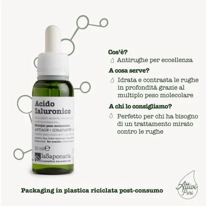 L’Acido Ialuronico è perfetto per chi desidera integrare la propria beauty routine con un attivo naturale in grado di donare un effetto tensore immediato e di idratare ed elasticizzare la pelle.